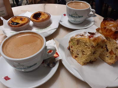 Los placeres del paladar son también parte inherente de los viajes. Y en Portugal sobran oportunidades para probar delicias gastronómicas. Además, no se come lo mismo en una región que en otra. Como visita en norte me di gusto probando especialidades locales como la célebre francesinha de Oporto, las papas a la sarrabulho , el bacalao a la Braga, las bolas de Berlín, etc, etc, etc. En Oporto, por ejemplo, justo enfrente del Mercado de Bolhao, hay un viejo salón de té y dulcería (la Confiteria do Bolhao ), fundada en 1896. Da gusto sentarse a una de las mesas de mármol, en un salón en el que aún se ven ancianos vestidos con traje, corbata y llevando un elegante bastón, y pedir un café con leche ( (en tazas de loza con la enseña y nombre grabada, como debe ser, y no en las mierdas plásticas o de cartón de las cadenas de café asqueroso a la americana, que por suerte no existen en Portugal), acompañado de pastel de nata y de brioches caseras que hacen con frutas confitadas. S...